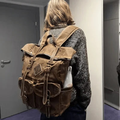 Lisbon canvas ryggsäcken förenar tidlös vintage charm med modern funktionalitet, vilket gör den till den perfekta följeslagaren för att bära dina nödvändigheter med stil.